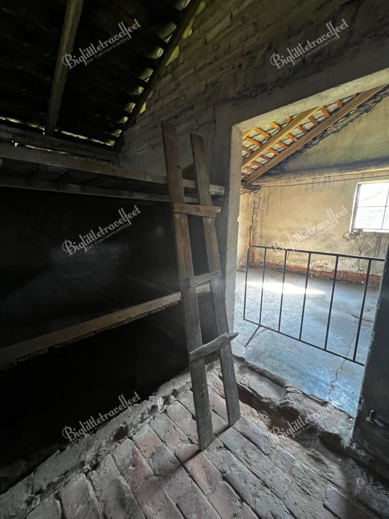 In the vastness of the grounds and the (actually eerie and not at all peaceful) silence, we let the impressions and information of the past few hours sink in. The wooden barracks in which the prisoners lived under inhumane conditions are still standing, as are the watchtowers surrounding the camp. It’s almost impossible to imagine how people could have survived here, even for a short time.