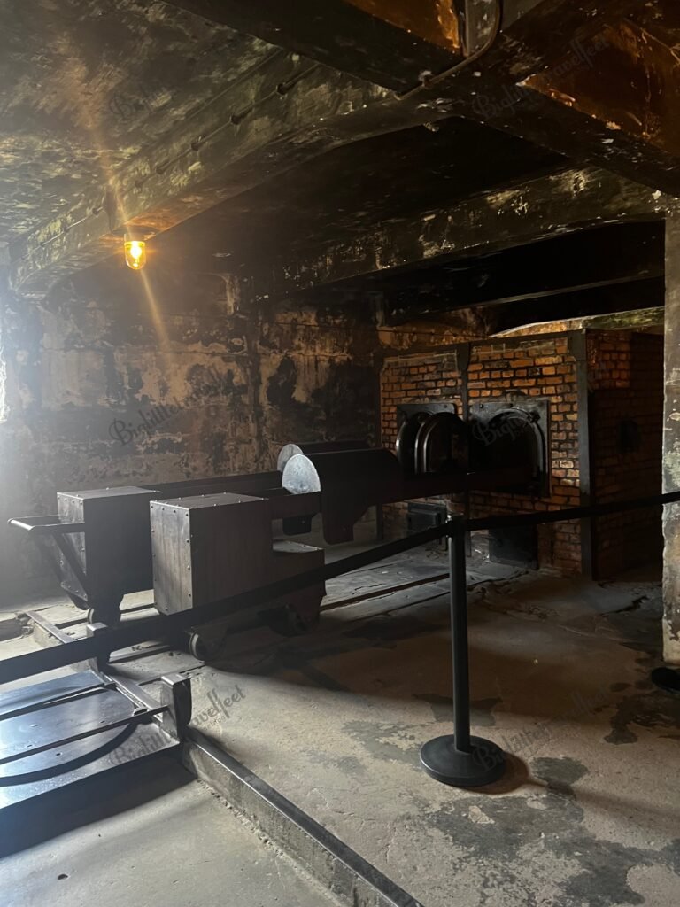 Our tour began in the basement, where we received our headphones. We then went through a modern tunnel to the outside and the actual start of the tour of Auschwitz. In the tunnel and on the way out, the names of those who died in the concentration camp were heard over the loudspeakers. This suddenly changed the behavior and mood of the visitors. The crowds were also nowhere to be seen. It suddenly seemed as if our tour group was almost alone on the vast site. During the 7-minute introductory video, we learned about the history of the camp, which was originally a Polish barracks and was built from 1940 onwards as an internment camp for Polish political prisoners. Later, it became a central site of the Holocaust, where over 1.1 million people, mostly Jews, lost their lives. At this point, I wasn’t the only one who shed tears.