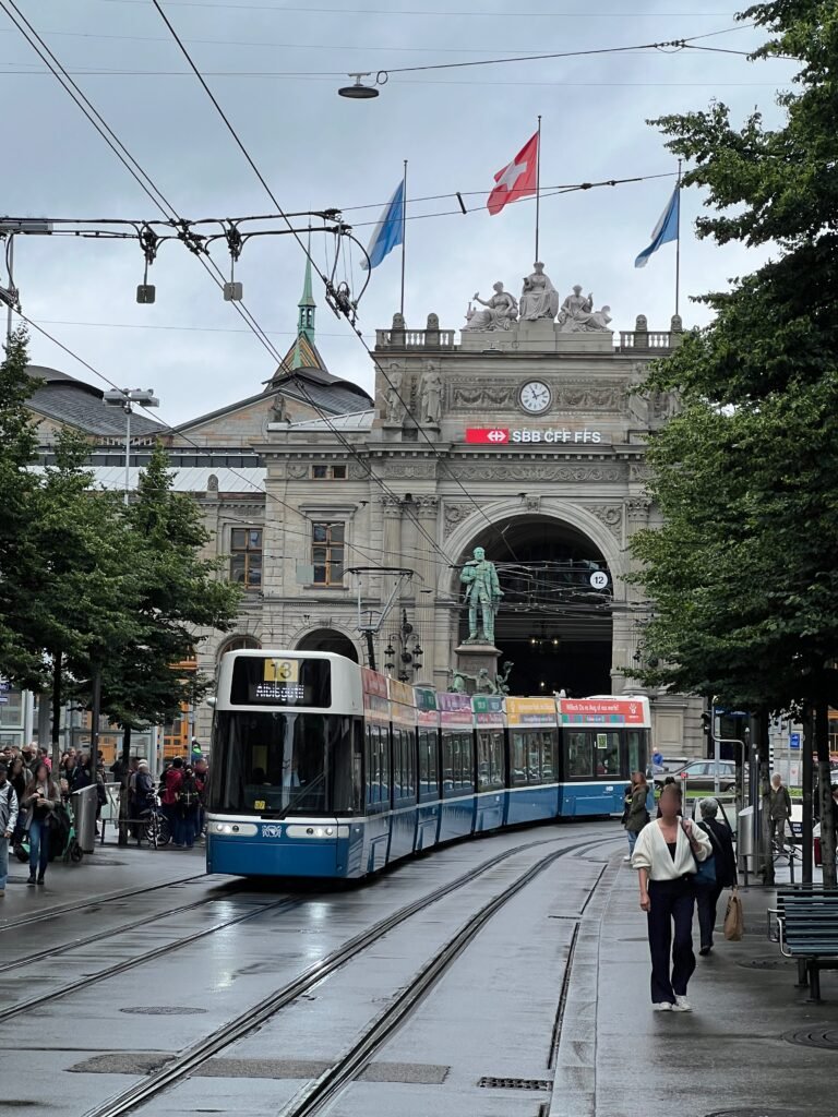 Gerne wären wir am nächsten Tag noch ins Lindt Home of Chocolate, in den Staatszirkus Knie oder ins Wow Museum der Illusionen gegangen, aber alles war wegen des anhaltenden schlechten Wetters komplett ausgebucht. Daher entschieden wir uns trotz des Regens zu einem Bummel über die Bahnhofstraße, einer der teuersten und exklusivsten Einkaufsstraßen der Welt. Hier findet man die luxuriösten Uhren,- Handtaschen- und Modemarken; eine neben der anderen. Und obwohl wir wohl nie zum üblichen Kundenstamm gehören werden, hat man uns überall sehr freundlich und zuvorkommen empfangen und auch den Kindern wurde die ein oder andere Frage mit einer Selbstverständlichkeit und sehr wertschätzend beantwortet. Das würde ich mir für die Kö in Düsseldorf auch ab und an wünschen! Da der Regen allmählich nachließ, ging es für uns am Limmatufer zurück Richtung einiger der typischen Sehenswürdigkeiten wie Frauenmünster, Großer Münster, Züricher Oper, Schauspielhaus und Kunsthalle. Etliche Meter in den Beinen belohnten wir uns vor der Rückfahrt zur Unterkunft noch mit den berühmten und oft empfohlenen Luxemburgerli von Sprüngli, einer etwas kleineren Ausgabe der bekannten Macarons.