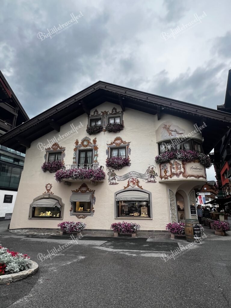 Nachmittags sind wir zum Patenonkel des Mittelkindes nach Garmisch-Partenkirchen rüber – entspannt durch die Fußgängerzone, Lüftlmalerei bewundern und natürlich ein Eis auf die Hand. Regenjacke? Immer griffbereit.