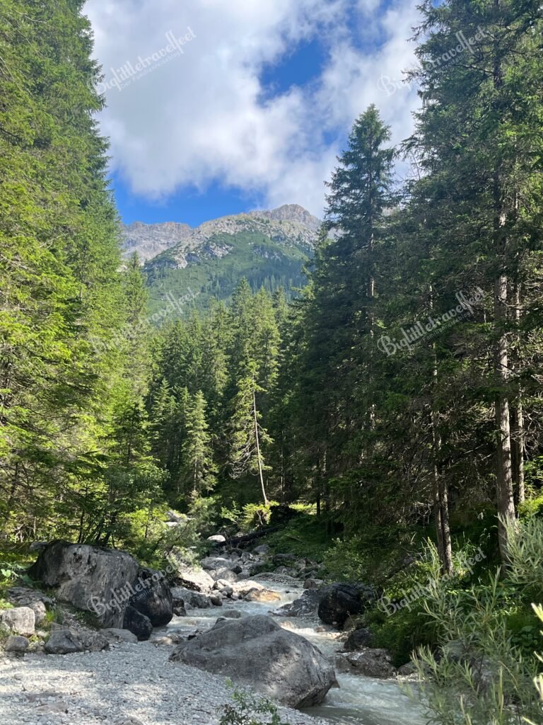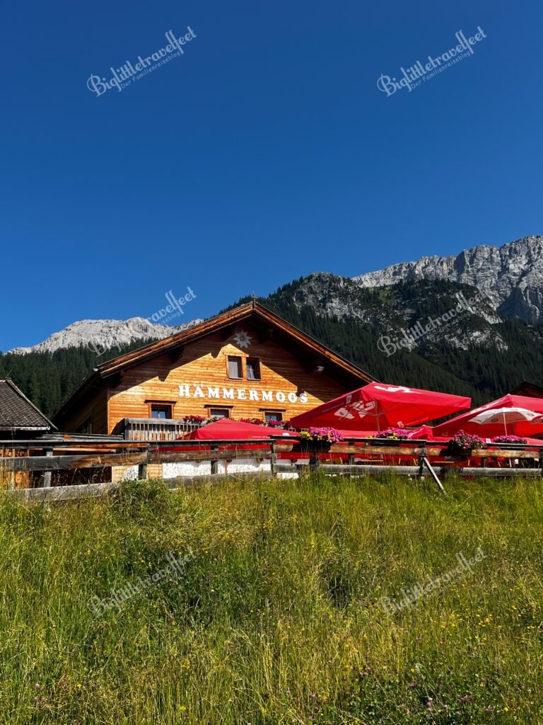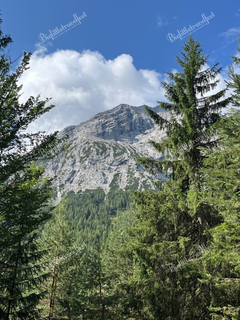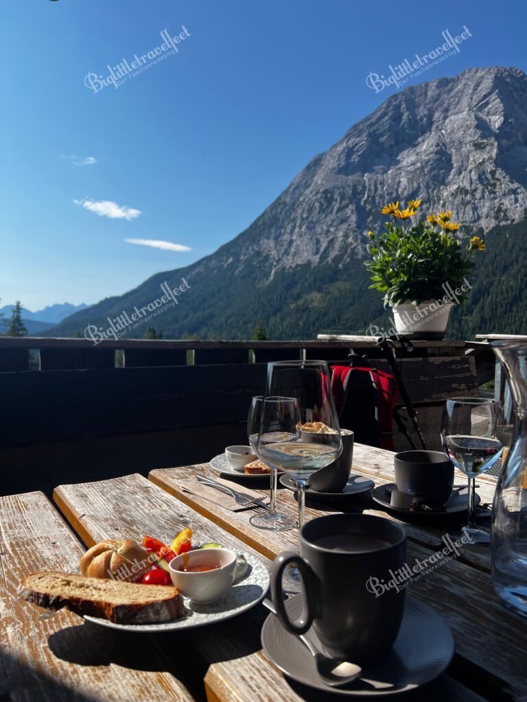Ab der zweiten Urlaubshälfte wurde das Wetter besser – und mit ihm die Stimmung. Die gut zweistündige Wanderung von der Gaistalalm zur Tillfussalm und zurück war genau das, was wir gebraucht haben: Weite, Wasserrauschen, frische Luft. Der Kaiserschmarrn auf der Alm hat uns endgültig versöhnt. Start war der Parkplatz 5 am Salzbach – von dort aus kann man am Wasser entlang den Kinderwagenfreundlichen Pfad nehmen oder durch Wald und Wiesen wandern. Der Tages-Park-Tarif kostete 5€ und kann per App oder in Münzen am Automat bezahlt werden.
