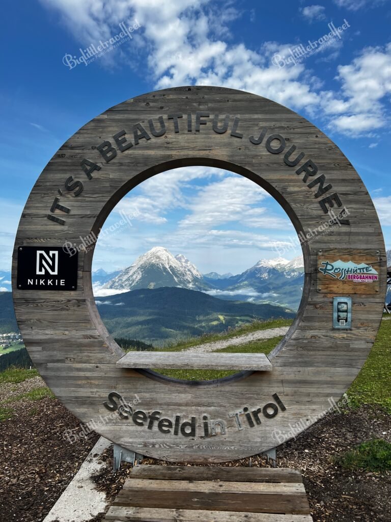 Am nächsten Tag mit der Rosshütte-Bahn hinauf aufs Seefelder Joch gab’s dann das volle Panorama – Berggipfel, Fernsicht, ein bisschen Höhenwind. Der Spielplatz und die riesige Murmelbahn an der Bergstation waren top für eine Pause mit Aussicht. Eine große Holzkugel gibt es für 2€ am Automaten. Auf der Hütte kann man zu akzeptablen Preisen gut essen.