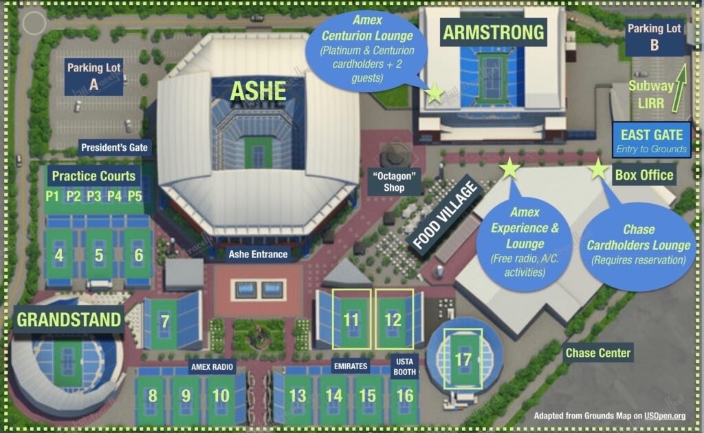 - Grounds passes are a slightly cheaper way to explore the tennis center if you don’t need stadium seats. They give you access to all training courts and stadiums except for Arthur Ash and Louis Armstrong.