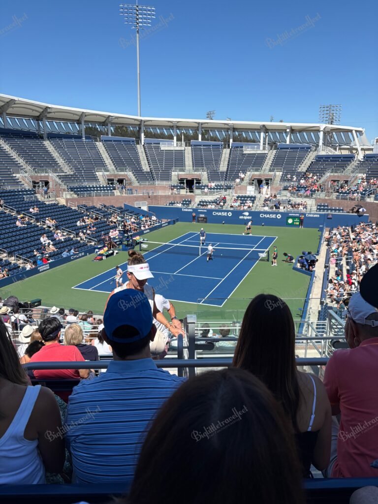 Since we were traveling with a baby and an active toddler we opted out of stadium passes for all of us and decided to split up tickets – Ground passes for me, baby and 4-year old and Day Session tickets for Arthur Ashe Stadium for our tennis-excited 6-year old and dad to catch the high-stakes Round of 16 action. The latter give full access to the stadium and all the day matches. Prices on that Sunday tended to be steep but reflective of peak tournament excitement: reserved Ashe seats ranged upward of ~$300 on the official ticket listings and even higher on resale for good views.