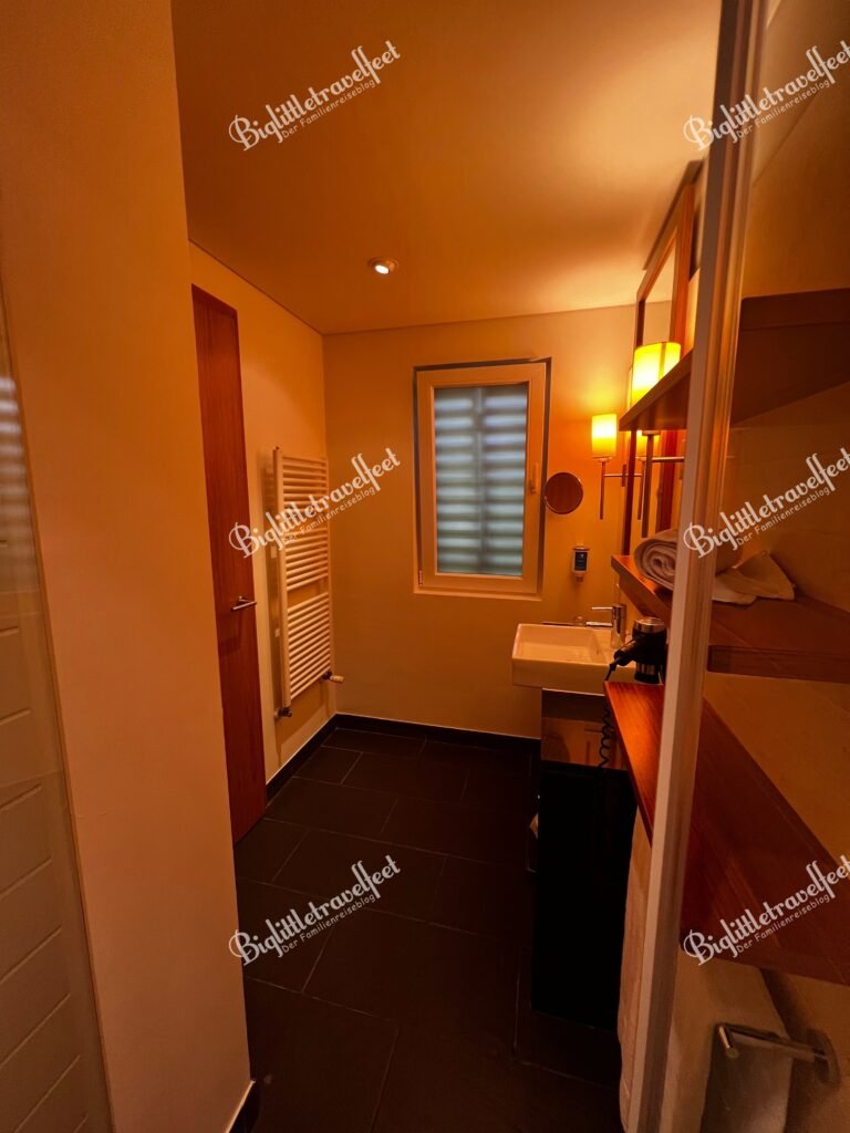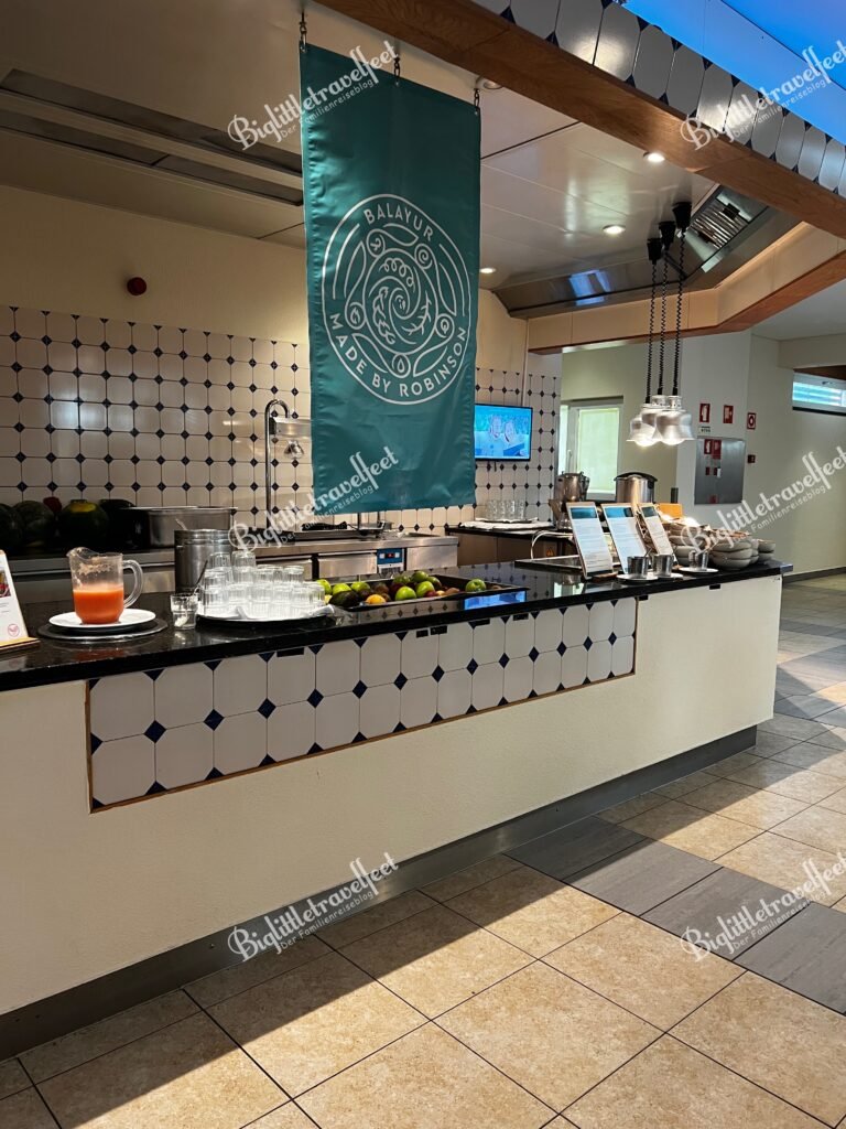 We had booked two double rooms for “single parent with child,” but thankfully, we received a family room on the ground floor of the Faro building, consisting of two connecting double rooms. The resort has a total of 285 rooms spread across several two-story buildings. The rooms were very clean and spacious, with comfortable beds and everything needed for a family vacation. The interior design is definitely from the 90s – lots of wood, simple shapes, no modern design – but that was perfectly fine with us. After all, we spent most of our time outdoors. One of my highlights at Robinson: the washing machines and dryers that you can use for free. With kids, sunscreen, and sweat, that’s an absolute game-changer!